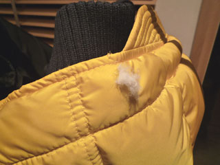 さすがモンクレール、余分なものは一切入ってなく、真っ白なふわふわのダウンでした。