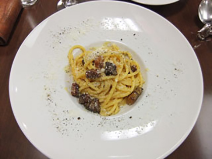 カルボナーラ発祥の地、ローマで人気のお店のレシピで作られた
