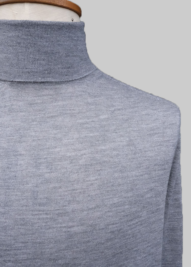 高級ハイゲージニットの黄金比「カシミヤ70/シルク30」で編み上げられたクルチアーニのハイゲージタートルネック。