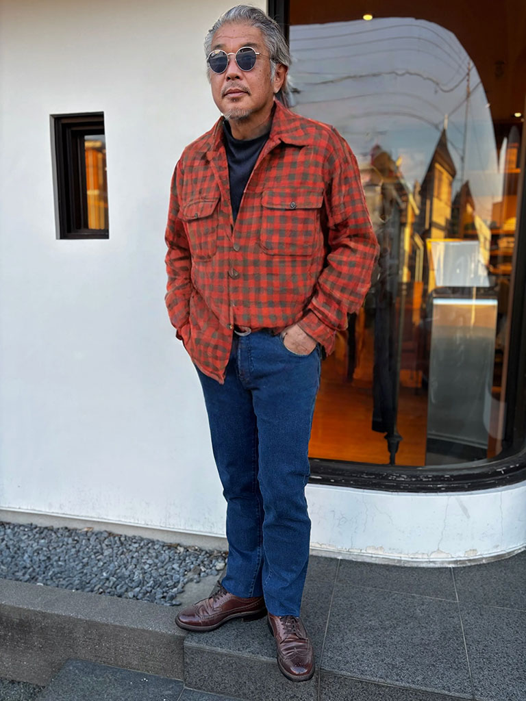 チェック柄はやや個性的でありながら、深みのあるトーンが季節感を演出。インナーにタートルやカットソーを合わせるだけでスタイルが決まる汎用性の高さも魅力です。シャツのように軽やかに羽織れて、ジャケットとしての存在感も備えた、まさに“抜け感のある上質さ”を体現した一枚。