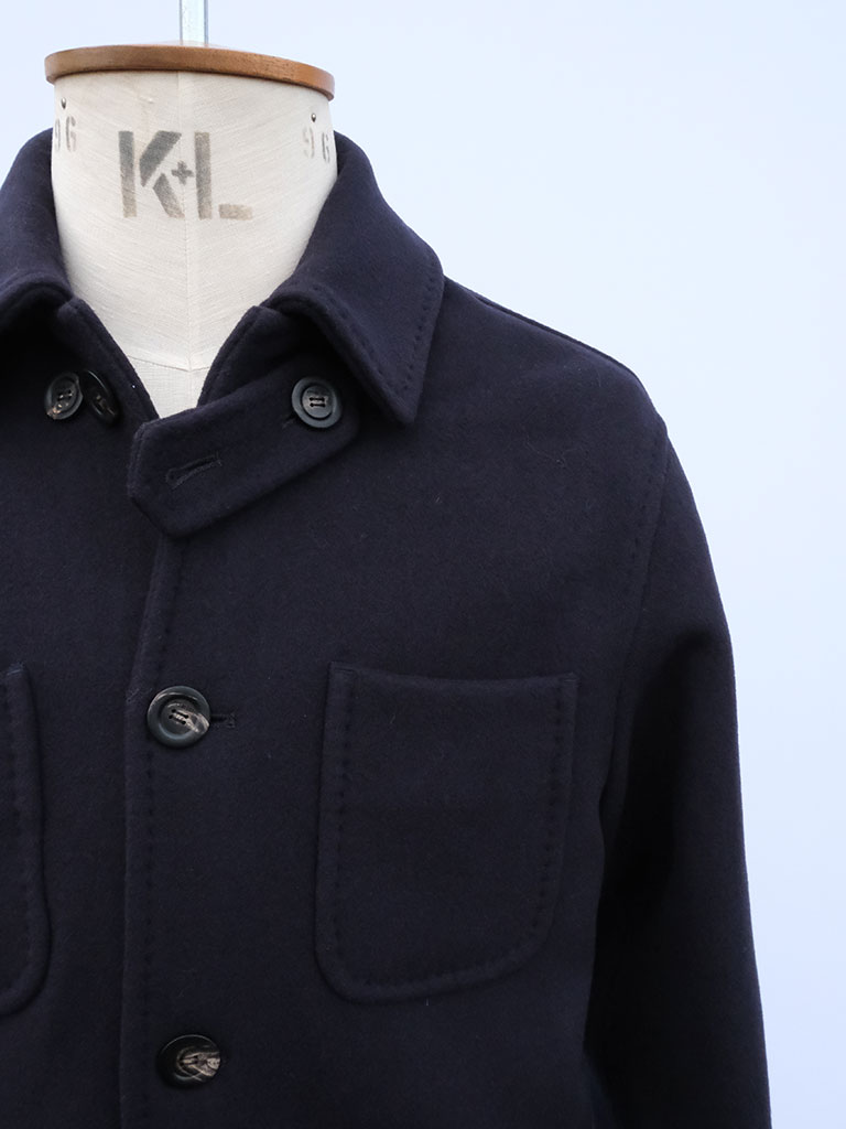 本作のカバーオールジャケットは、ブランドの真髄である素材へのこだわりと、精緻な仕立てを融合させた逸品。厳選されたウールとカシミヤをブレンドした生地は、しっとりとした手触りと軽やかな保温性を兼ね備え、身体を包み込むような着心地を実現しています。カバーオール特有のワーク感をベースにしながらも、maloらしい上品な空気感が漂う仕上がり。