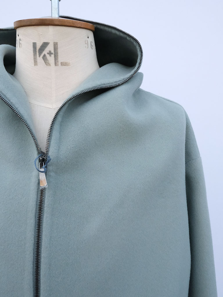 そんなmaloから登場したウールカシミヤフーディーは、ポンチョのようなシルエットが特徴の一着。ゆったりとしたフォルムながらも、上質素材ならではの美しいドレープと落ち感があり、羽織るだけでリラックス感と気品を兼ね備えたスタイルに仕上がります。ウールとカシミヤを絶妙なバランスでブレンドした生地は、驚くほど軽く、包み込まれるような温もりを感じさせます。