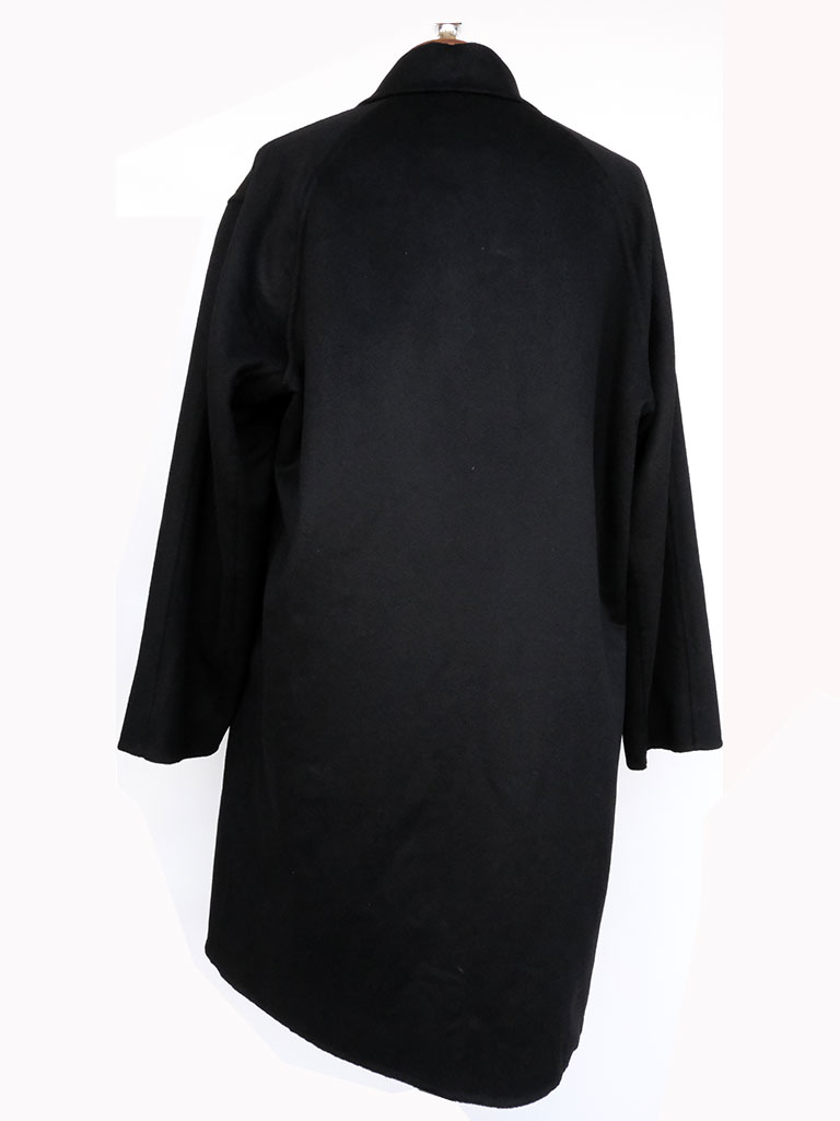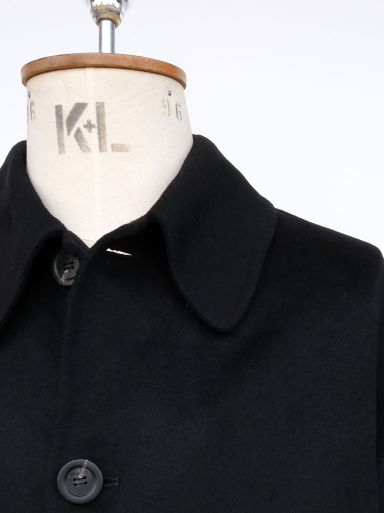 本作は、贅沢なウールカシミヤのダブルフェイス生地を使用したノーカラーコート。芯地を使わず、1枚仕立てで仕上げることで、カシミヤ特有のしなやかさと優雅な艶を存分に堪能できます。軽やかで柔らかな風合いは、羽織るだけで身体に馴染み、上質な空気感を漂わせます。素材の厚みを感じさせながらも驚くほど軽く、極上の着心地を実現しています。