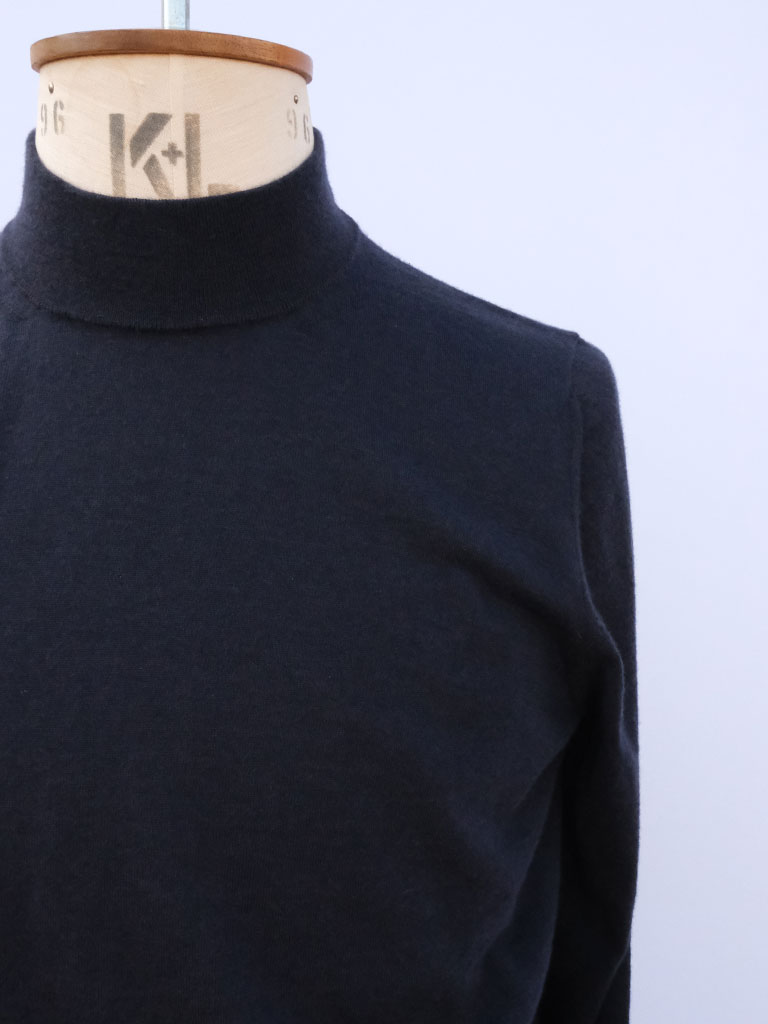 モックネックならではの上品な首元のラインが、シンプルながらも洗練された印象を演出。ジャケットのインナーとしても、一枚で着ても美しくまとまるバランスの取れたシルエットが魅力です。無駄のないミニマルなデザインは、どんなスタイルにも自然に溶け込み、タイムレスに愛用できる定番としてワードローブに欠かせない存在となるでしょう。