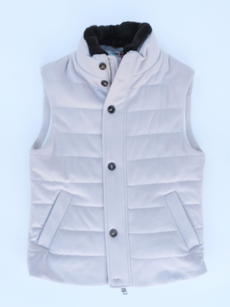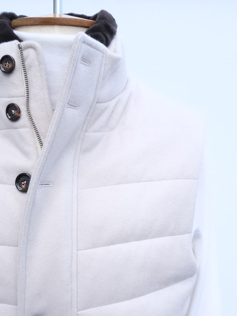 とろけるような極上のカシミヤで仕立てられた中綿ベスト。