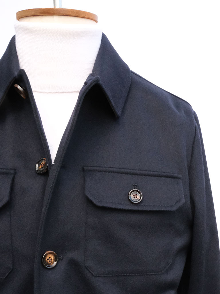 シャツの軽やかさとブルゾンの包容力をひとつにまとめた、洗練されたラグジュアリーアウターです。素材にはイタリアの名門“カルロバルメロ(Carlo Barmero)”が厳選した**ピュアカシミヤ100%**を採用。繊維のきめが細かく、触れるたびに静かに体温へと溶け込んでいくような柔らかさを持ち、優れた保温性と軽やかさを同時に叶えています。カシミヤの自然な光沢がさりげなく立ち、シンプルなデザインながら確かな品格が漂います。