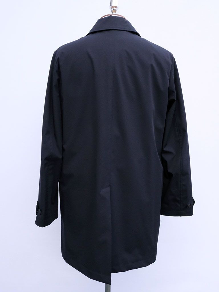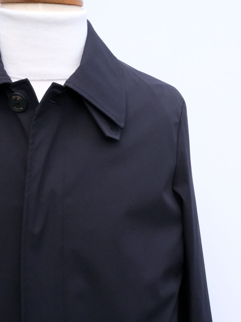 機能性と遊び心を上品に融合させたナイロンストレッチ ステンカラーコート。