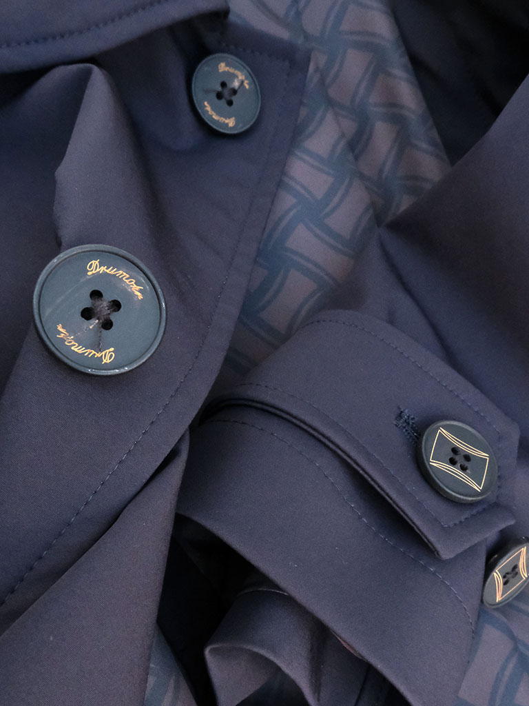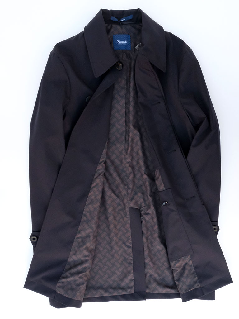 さりげないアクセントとして目を引くのが、ライニングに施されたビスコッティ柄。コートを脱いだ際やふとした動きの中で覗く遊び心あるデザインが、ドルモアらしい大人の余裕を演出します。