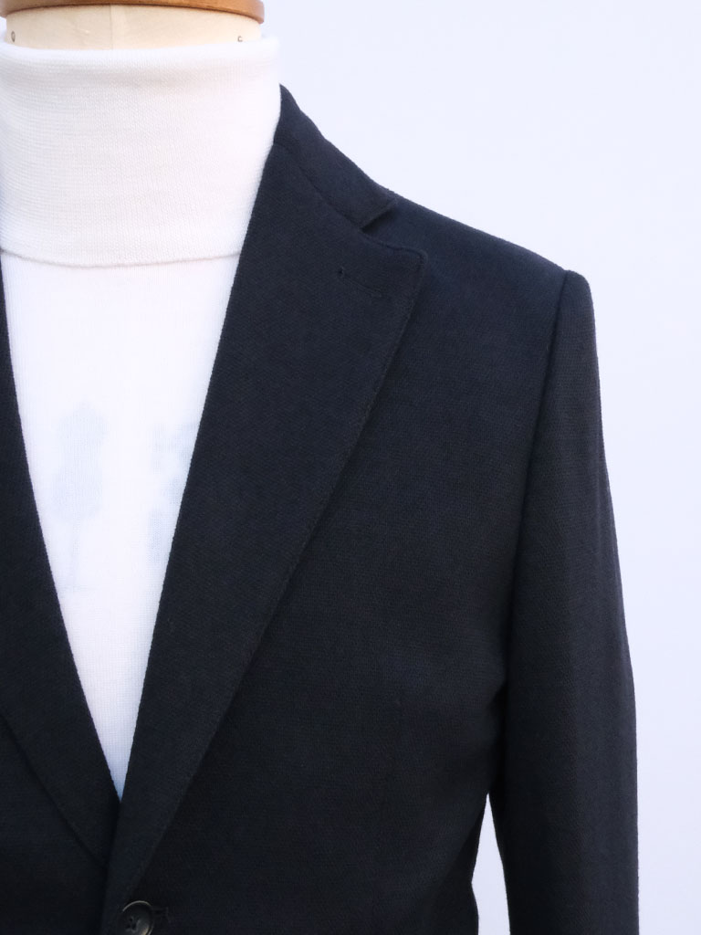 仕立てはアンコンストラクテッド仕様を採用。芯地や肩パッドを極力省くことで軽快さを高めつつ、立体的な設計によってシルエットは美しく整えられています。特に肩まわりのラインは秀逸で、自然に身体に沿いながらもだらしなく見えない仕上がり。シンプルな構造だからこそ、ギローバーの縫製技術とパターンの完成度が際立ちます。