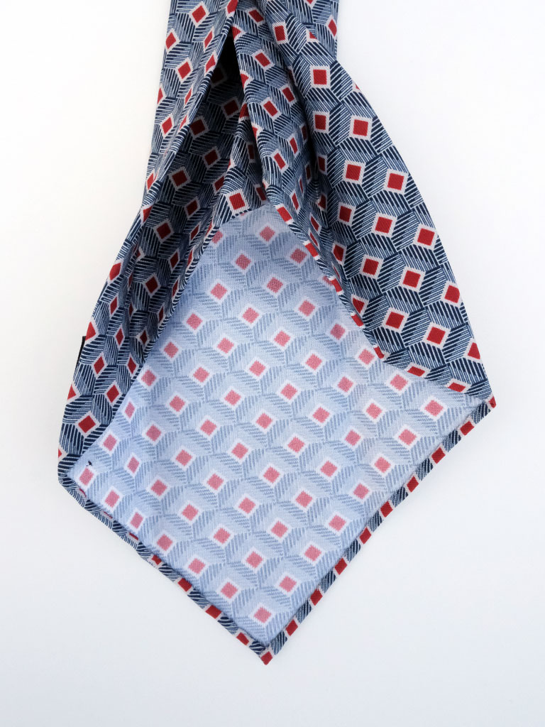 「セッテピエゲ」とは、イタリア語で「七つ折り」を意味する、熟練の職人技が光る仕立て技法。生地を贅沢に使い、一枚仕立てで七回折り込むことで、芯地を使わずとも立体感のある美しいフォルムを生み出します。結び目には自然なボリュームが生まれ、締め心地は驚くほど柔らか。首元にふんわりと寄り添い、解いた瞬間に感じるそのしなやかさは、手作業ならではの証です。