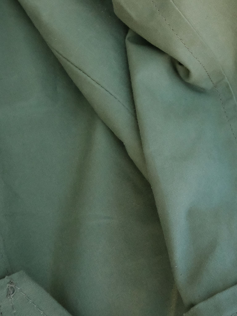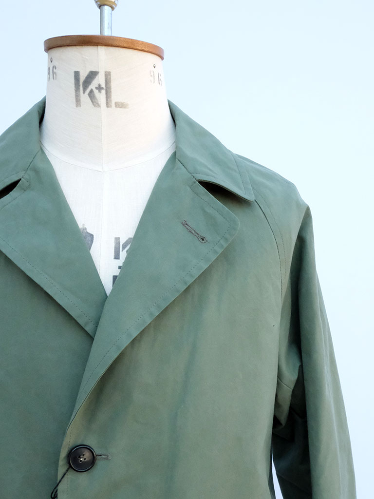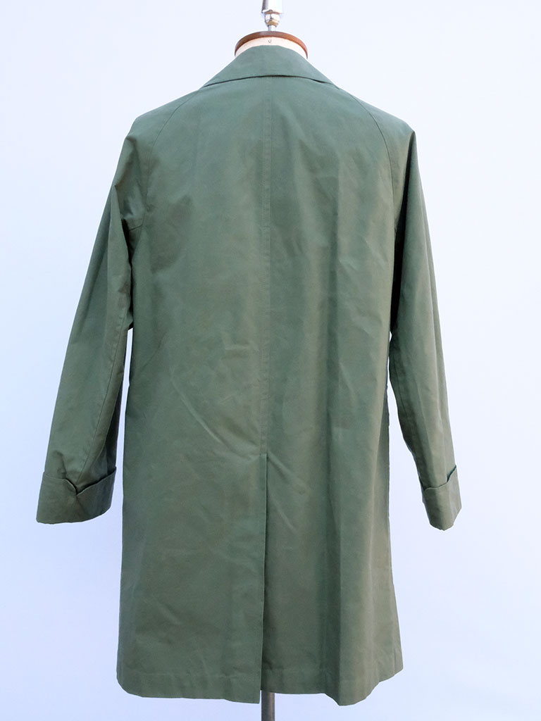 素材には、程よいハリとしなやかさを持つワックスコットンを採用。ほんのりとした艶感が上品な印象を与えると同時に、撥水性にも優れており、急な天候の変化にも対応します。着込むほどに生地に味わいが増し、経年変化による独特の風合いを楽しめるのも魅力のひとつです。