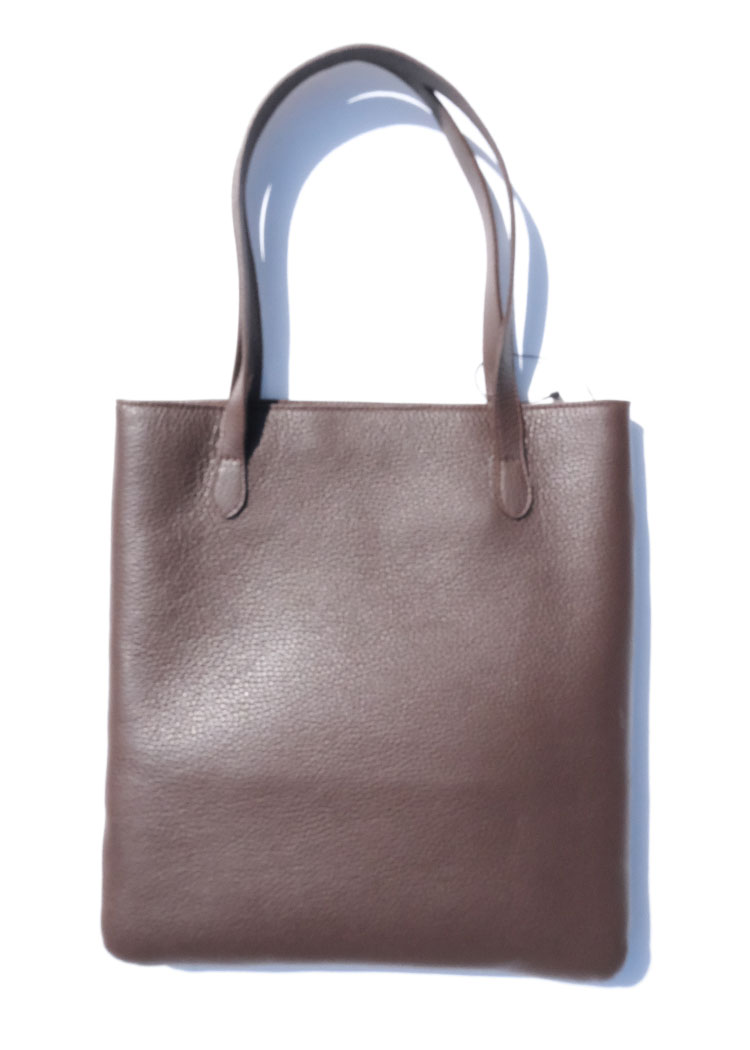 デザインは極めてシンプルで、無駄を削ぎ落としたフラットに近いシルエットが特徴。マチを抑えたスマートなフォルムは、持つだけで洗練された印象を与え、スタイリング全体を引き締めてくれます。コンパクトなサイズ感ながら必要な荷物をしっかりと収める実用性も兼ね備え、オンオフ問わず活躍。カジュアルな装いには品の良さを、ドレススタイルには程よい抜け感をプラスします。