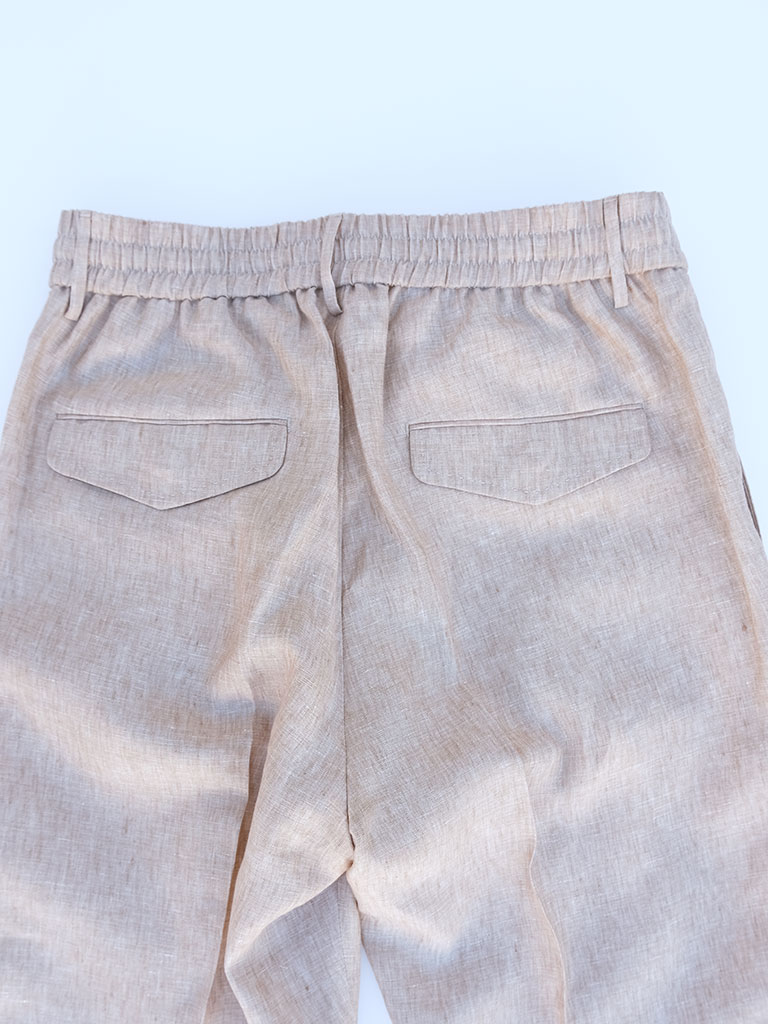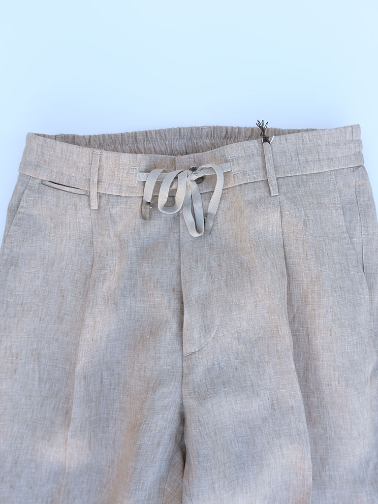 Tシャツやリネンシャツと合わせたリラックススタイルはもちろん、ジャケットと組み合わせることで程よく力の抜けた大人の着こなしにも対応。休日の軽やかな一本としても、旅先でのワードローブとしても活躍する汎用性の高さが魅力です。快適さと上品さを両立した、長く愛用したくなるリネンパンツです。
