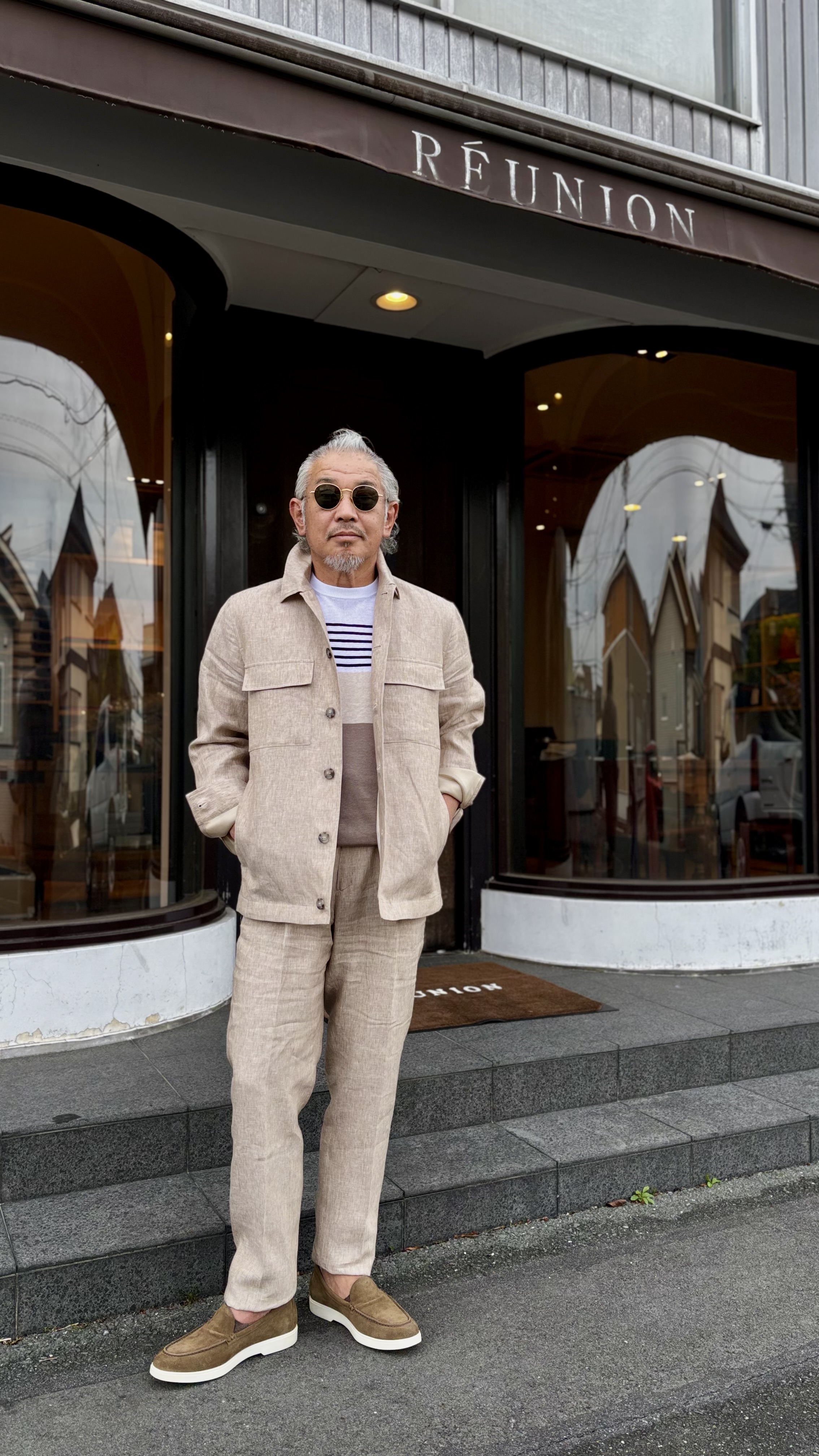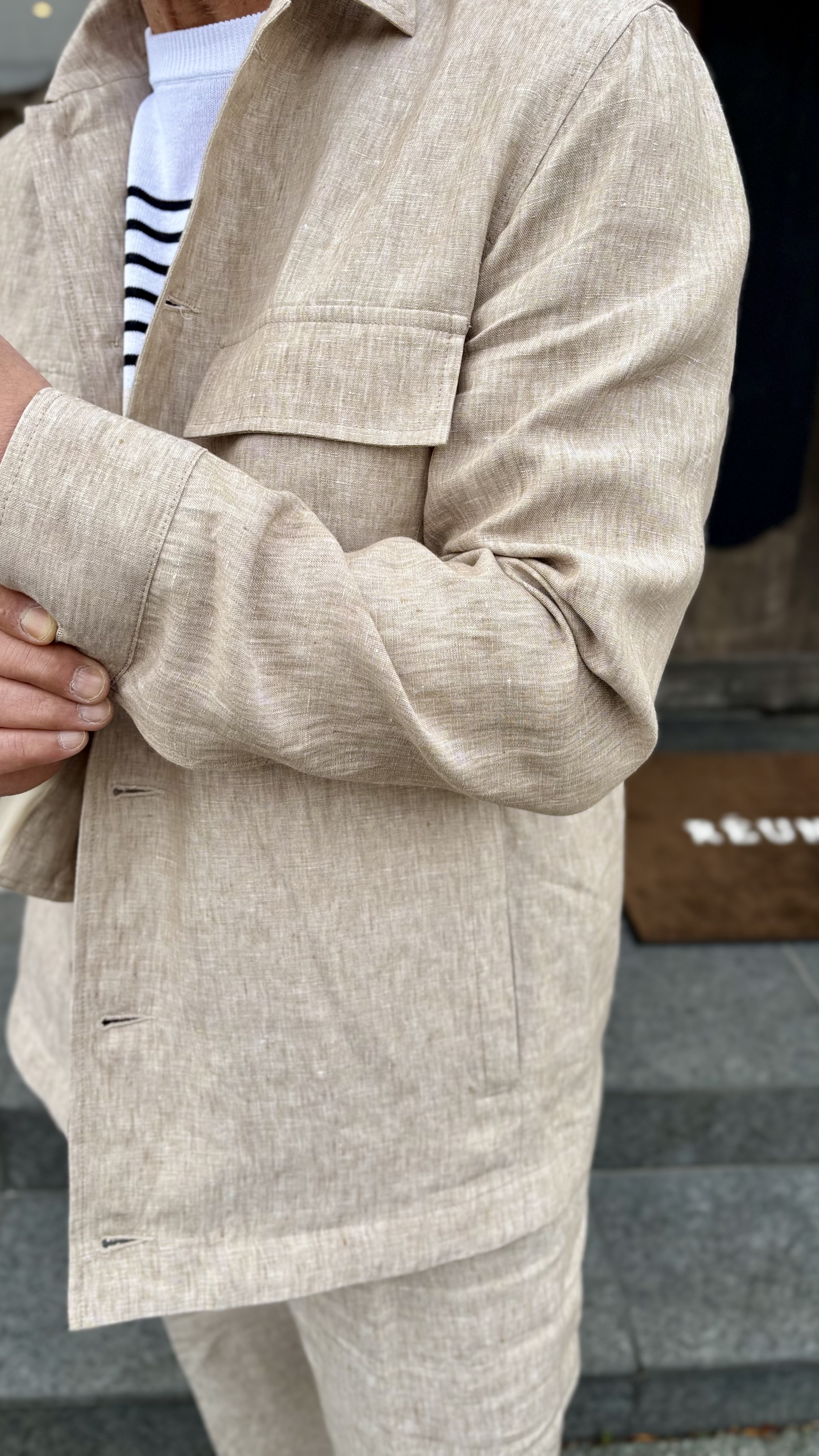 素材には上質なリネンを使用し、通気性と吸湿性に優れた快適な着用感を実現。ドライでさらりとした肌触りが特徴で、汗ばむ季節でも心地よく過ごせます。リネン特有のナチュラルなシワ感や風合いがスタイリングに奥行きを与え、シンプルな装いでも雰囲気のある着こなしへと導いてくれます。