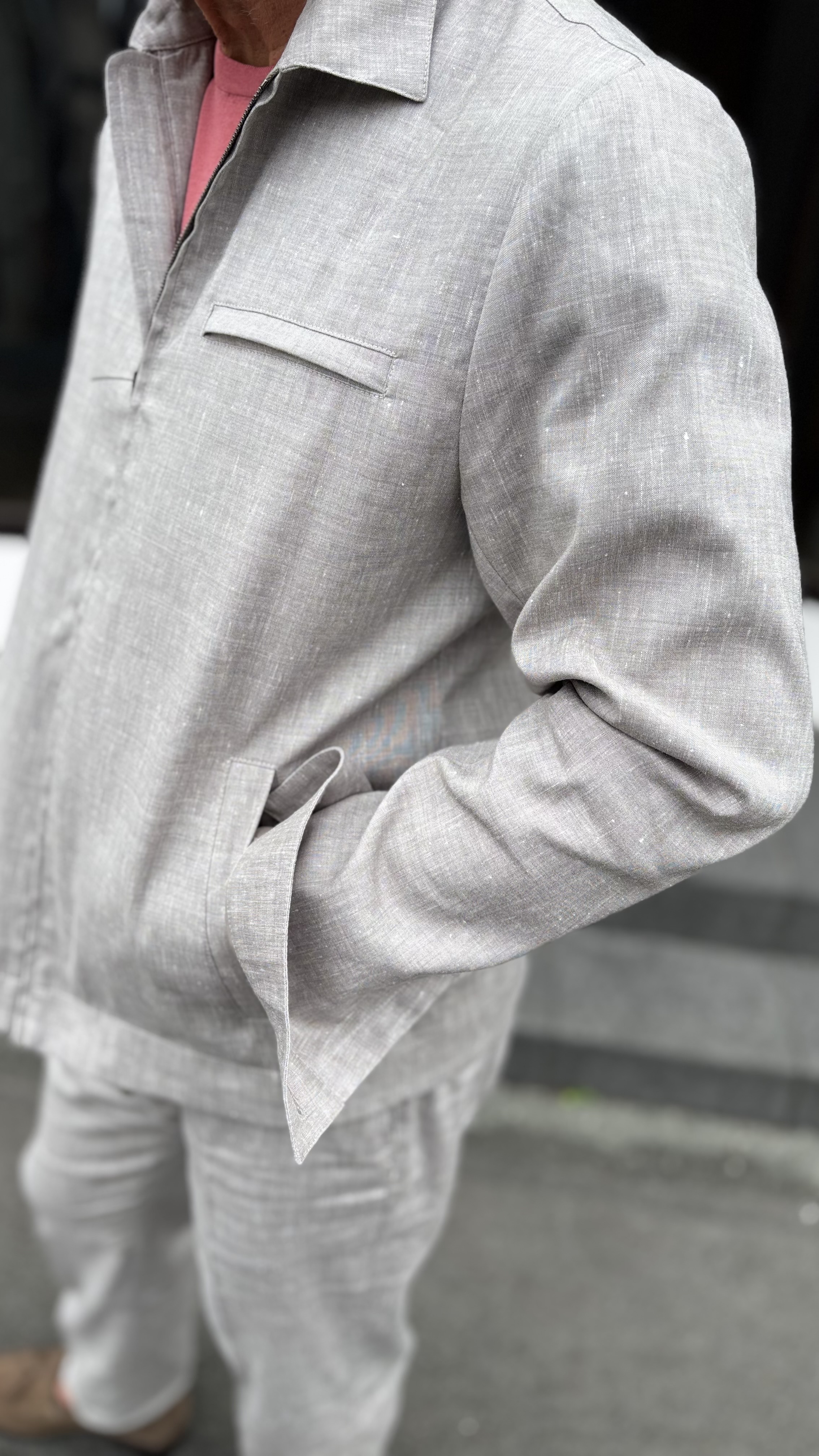 こちらのリネンジップアップジャケットは、軽やかな着心地と上品な佇まいを兼ね備えた一着。カジュアルな印象のジップアップ仕様でありながら、Pesericoならではの端正なパターンメイキングにより、ラフになりすぎない絶妙なバランスに仕上げられています。シルエットは適度にゆとりを持たせつつも、すっきりとしたラインで構成されており、羽織るだけで洗練された印象を演出します。